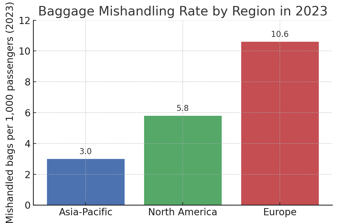 In fact, industry experts point to examples like Japan or Hong Kong, where baggage handling is almost an art form – short connection times but very low error rates – thanks to disciplined processes and cutting-edge baggage systems. SITA noted that Asia-Pacific’s consistency in the ~3 per 1,000 range, even after doubling passenger volume in 2023, is remarkable and likely aided by technology and data-sharing initiatives. North America falls in between: the U.S., in particular, has improved baggage handling in recent years by adding more ground staff and investing in IT, which led to a 9% reduction in mishandled bags in 2023 for U.S. airlines.