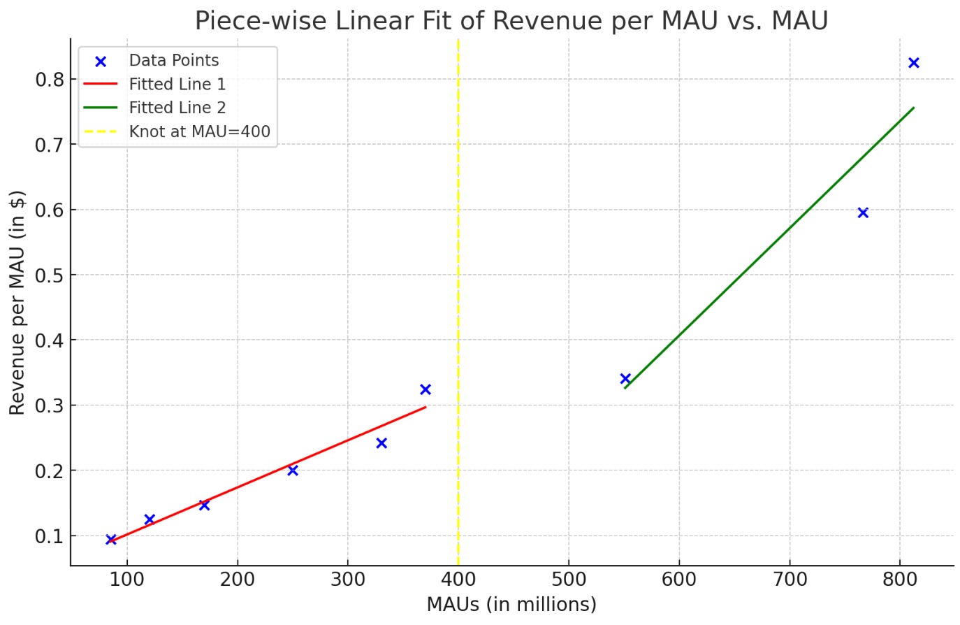 The observed data indicate that the company is experiencing growth, with revenue per MAU increasing, which then yields a path to profitability: