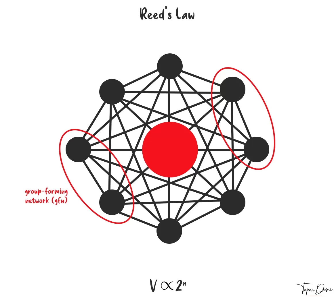 What makes Reddit intriguing is its ability to monetize its sub-communities (subreddits in the Reddit jargon) and not just the users themselves. This suggests a dynamic where, as the number of users increases, so does the number of communities they belong to, a phenomenon known as Reed’s Law.