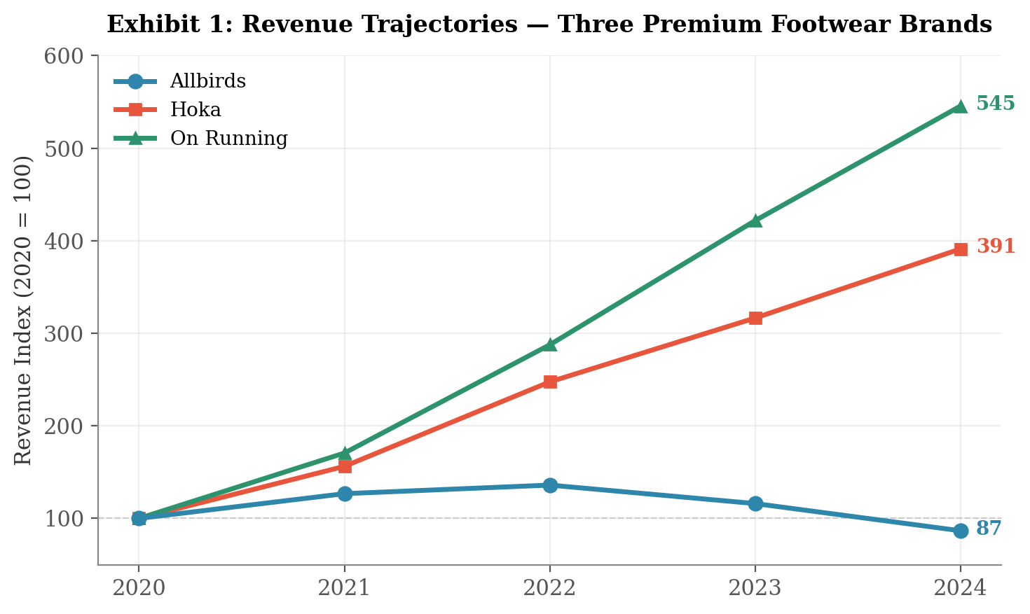 The conventional narrative is that Allbirds was a pandemic darling that couldn’t survive normalization. There is truth in that. But it is not sufficient. Hoka and On Running were also riding tailwinds during the same period, and they have not only survived but thrived.