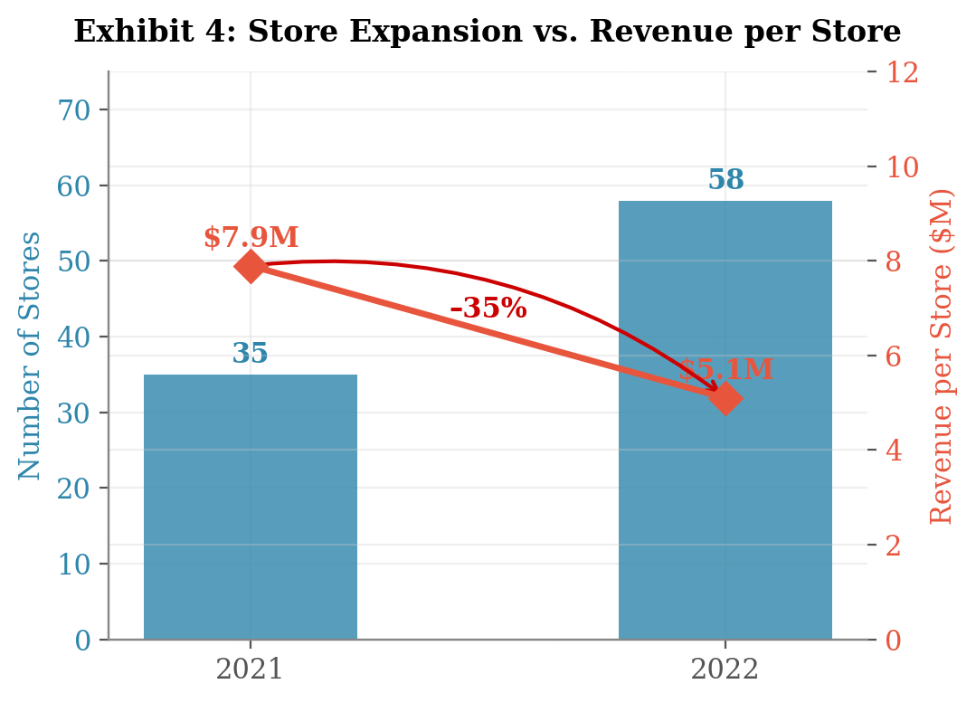 Each store required lease commitments, buildout capital, staffing, and inventory.